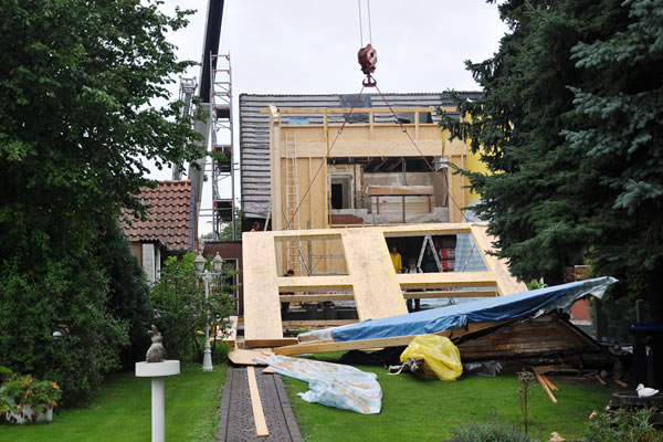 Zweigeschossiger Anbau bei Dortmund, Holzrahmenbau Zellulosedämmung